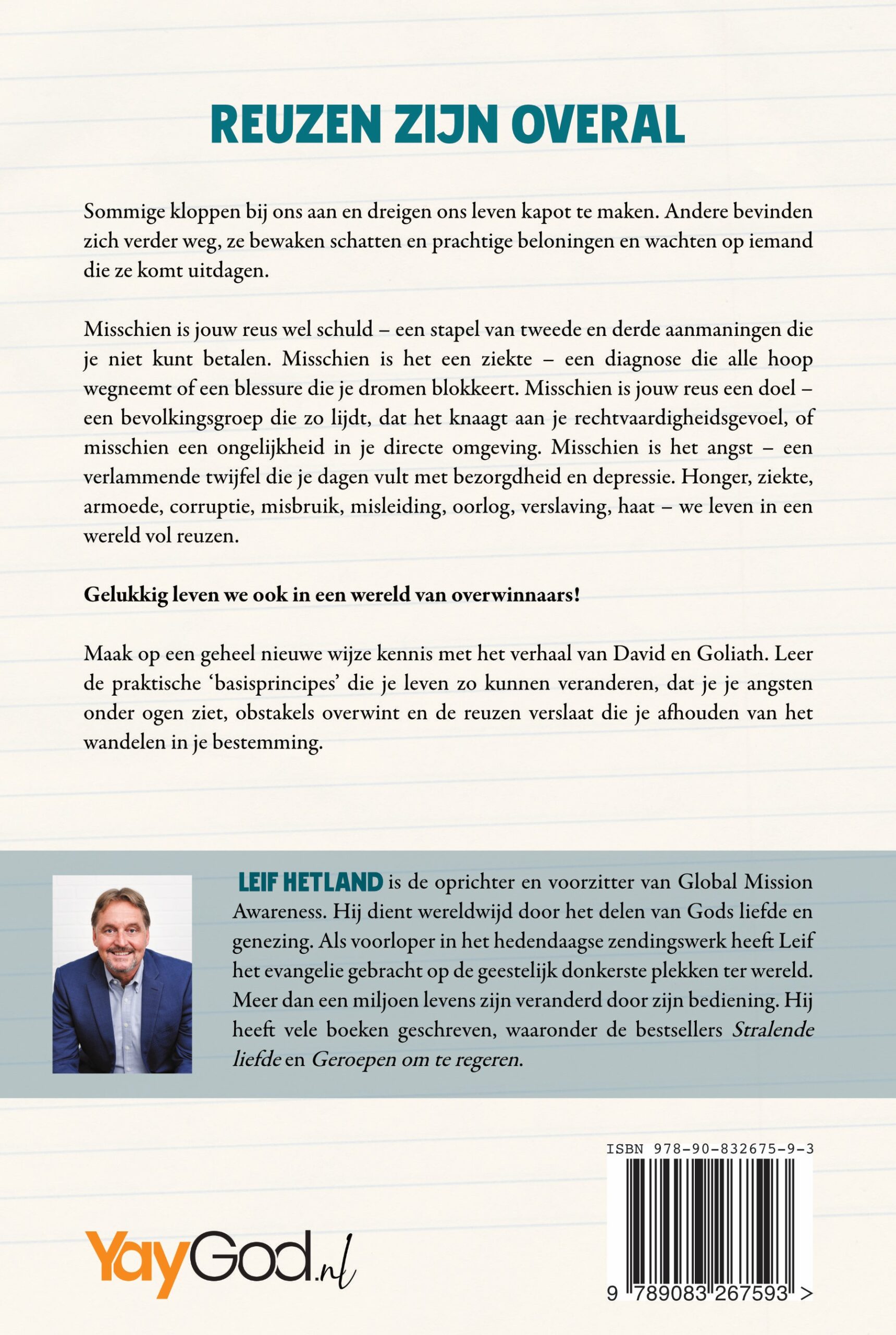 Misschien is jouw reus wel schuld – een stapel van tweede en derde aanmaningen die je niet kunt betalen. Misschien is het een ziekte – een diagnose die alle hoop wegneemt of een blessure die je dromen blokkeert. Misschien is jouw reus een doel – een bevolkingsgroep die zo lijdt, dat het knaagt aan je rechtvaardigheidsgevoel, of misschien een ongelijkheid in je directe omgeving. Misschien is het angst – een verlammende twijfel die je dagen vult met bezorgdheid en depressie. Honger, ziekte, armoede, corruptie, misbruik, misleiding, oorlog, verslaving, haat – we leven in een wereld vol reuzen.